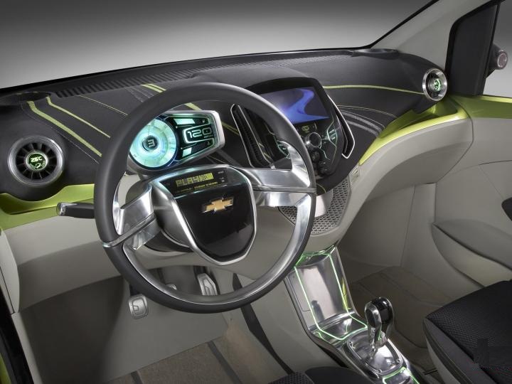 The Chevrolet Beat is a front-wheel-drive, three-door hatchback wrapped in a bright Vertigo Green exterior finish that exudes energy and extends into the interior. The overall mood of the exterior and interior design is that of a high-performance, high-tech micro tuner car, with fascia’s, rocker panels, lamps and wheels enhanced for personalization, a strong trend among buyers in this market. Engine