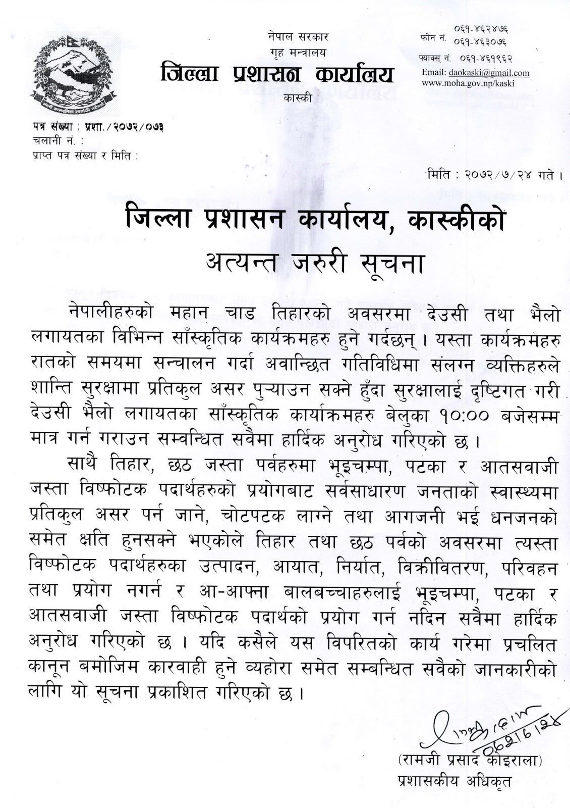 अनेरास्ववियु भुगोल जिल्ला कमिटी कास्कीले मंसिर ९ गते सुनसरी जिल्लाको हरीपुर गाविसमा भारतिय सिमा सुरक्षा बल प्रवेश गरी अन्धाधुन्ध गोलि चलाउँदा चार जना घाईते भएको विषयमा नेपाल स्थित भारतिय राजदुताबासको कार्यालयले नेपालीहरुलाई गोली प्रहार नगरेको भन्ने विज्ञप्ती जारी गरेकोमा भारतिय राजदुत, घटनाका दोषि जवान र योजनाकारहरुलाई कारवाही लागि अन्र्तराष्ट्रिय अदालतमा उभ्याउनुपर्ने भन्दै प्रमुख जिल्ला अधिकारी कास्की मार्फत नेपाल सरकारलाई ज्ञापन पत्र बुझाएको छ । अन्र्तराष्ट्रिय सन्धि सम्झौता उल्लब्घन गर्दै अमानविय रुपमा नाकाबन्दि गर्ने, खुलमखुल्ला नेपाल प्रवेशगरी नेपाली नागरीकामाथी गोलि प्रहार गर्ने, भारतिय लोकसभाका सांसदले नेपालको भुमि भारतकै हो भन्ने जस्ता हेपाहा अभिव्यक्ति दिनु भारतको नेपाल प्रतिको कुदृष्टि भएको हुँदा यस्तो अवस्थामा पनि नेपाल सरकार टुलुटुलु हेरेर बस्न नहुने भन्दै अब यो समस्या समाधानको लागि अन्र्तराष्ट्रिय अदालत जानु पर्ने ज्ञापन पत्रमा जनाईएको छ । अनेरास्ववियु भुगोल जिल्ला कमिटी कास्कीका अध्यक्ष शेखर गौतमद्धारा हस्ताक्षरीत ज्ञापन पत्रमा राष्ट्र जोगाउनको लागि गरिने नेपाल सरकारको जस्तो सुकै कदममा अनेरास्ववियुले साथ दिने बताईएको छ । ज्ञापन बुझ्दै सहायक प्रमुख जिल्ला अधिकारी चन्द्रनाथ गौतमले विद्यार्थीले उठाएका कुराहरु समयसान्दर्भिक रहेको र यसलाई कार्यान्वयन गराउने तहमा पु¥याउने बचन दिएका थिए ।