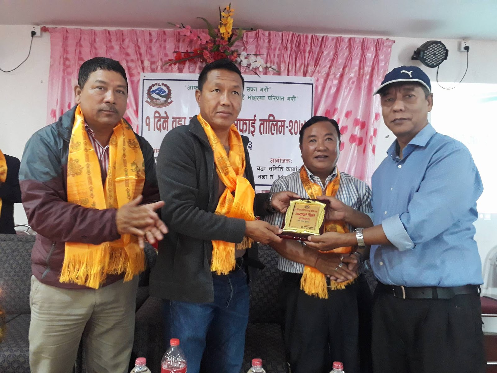 १ दिने तालिममा सभापति एवं वडा सदस्य सम्मर बहादुर श्रेष्ठको सभापतित्वमा सम्पन्न कार्यक्रममा वडा नं. १० मा सरसफाई अभियान संचालन गरी टोल टोललाई जागरण गराउने विचार राख्नुभएको थियो । तालिमको संचालन दिपक बहादुर थापाले संचालन गर्नुभएको थियो ।
